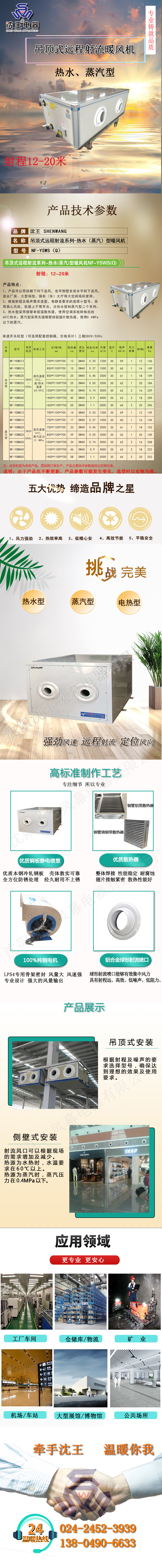 吊顶式远程射流系列热水(蒸汽)暖风机NF-YSWS(Q)
